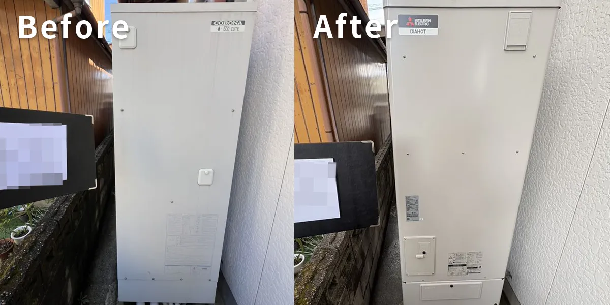 今回は、コロナ製エコキュート【CHP-371D1A8】から三菱製エコキュート【SRT-S376U】への交換工事の事例をご紹介しました!