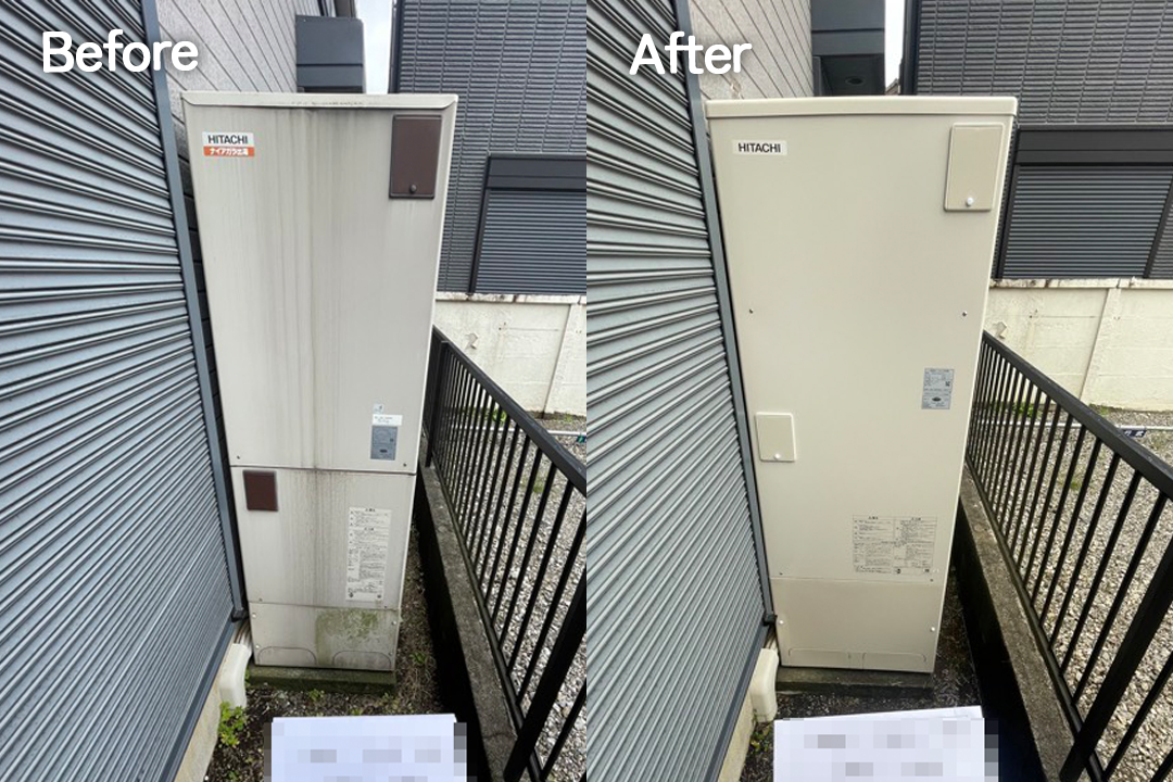 貯湯タンクはもちろん、年季の入ったヒートポンプもピカピカのものに。