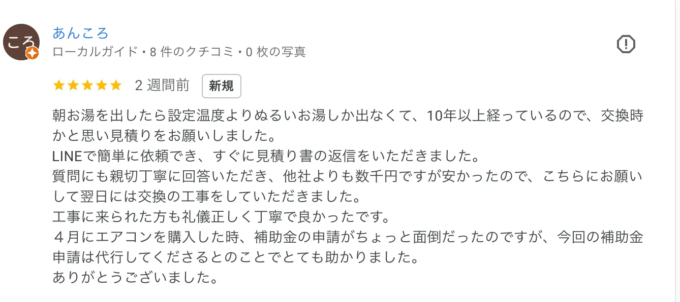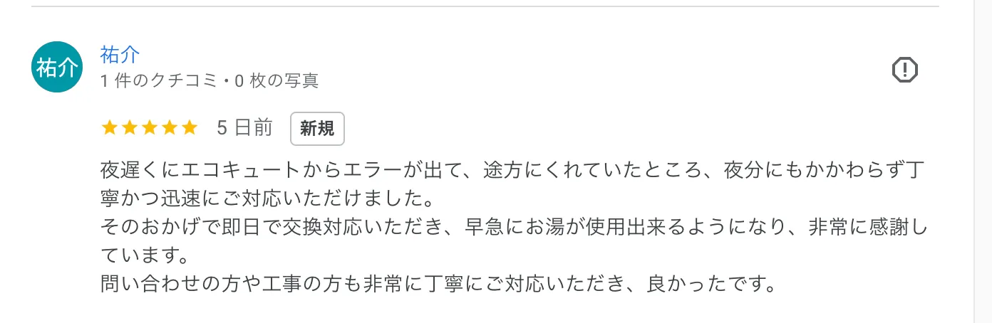 すぐにご対応させていただきお湯が使用できるようになったとのことで安心いたしました。