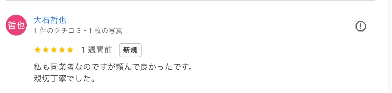 同業者のお客様にもこのようにおっしゃっていただき嬉しい限りです。