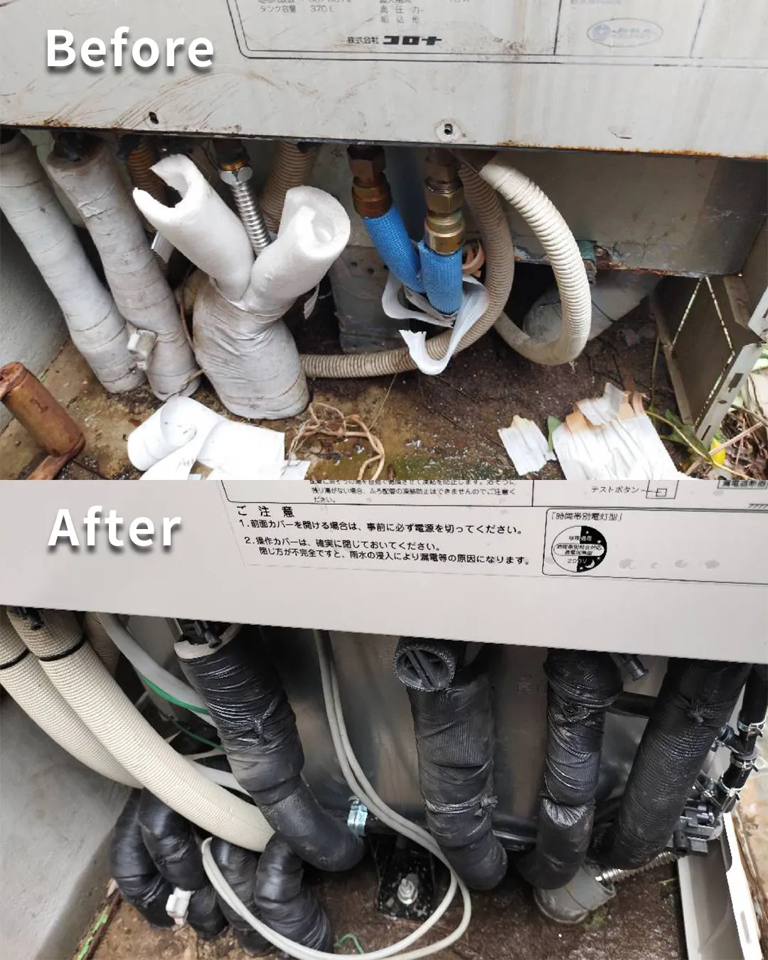経年でボロボロになってしまった配管部分もこのように新しく交換して綺麗に施工いたします✨