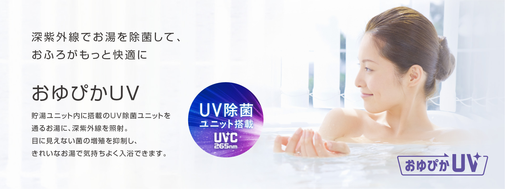 紫外線を利用してお湯を抗菌・消毒するおゆぴかUV機能。