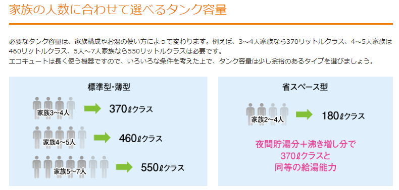 ▼家族構成人数ごとのタンク容量の目安はこちらをご参照ください▼