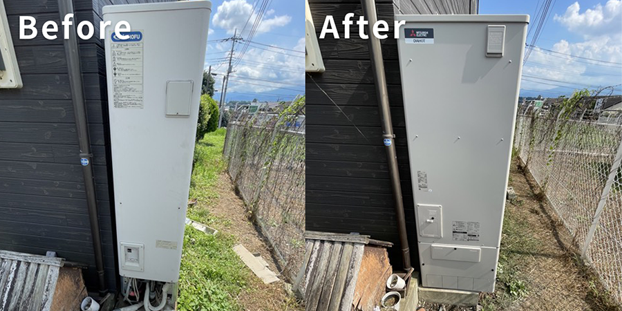 今回は、CHOFU製エコキュート【EHP-3756GPXHT】から三菱製エコキュート【SRT-S376】への交換事例をご紹介しました!