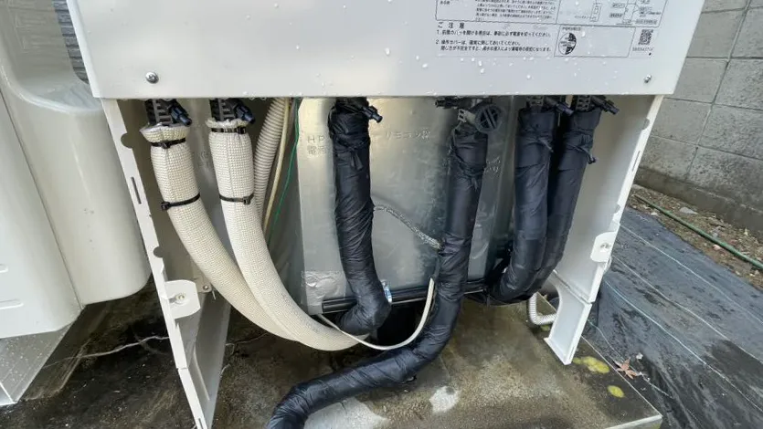 配管まわりはエコキュート専用のものを使い、カバーでしっかりと保護しています👷
