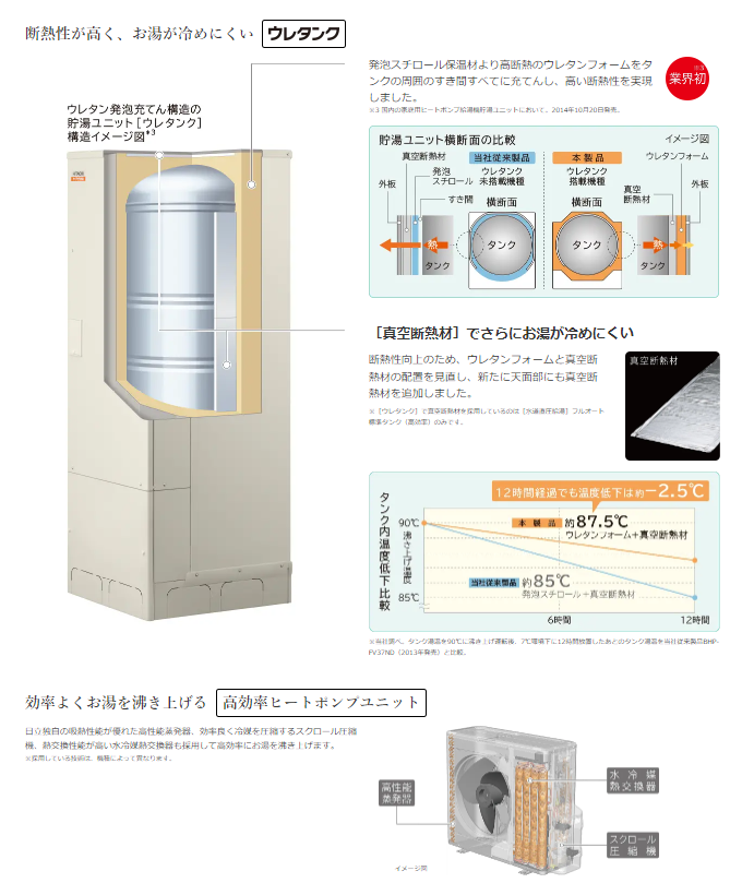 これによりエネルギーの消費を抑えながら高効率でお湯の沸き上げを行い、高い省エネ効果を実現しています。