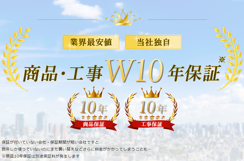 当社でエコキュートの設置・交換を行ったお客様には「商品保証」「工事保証」を10年間、W保証いたします!