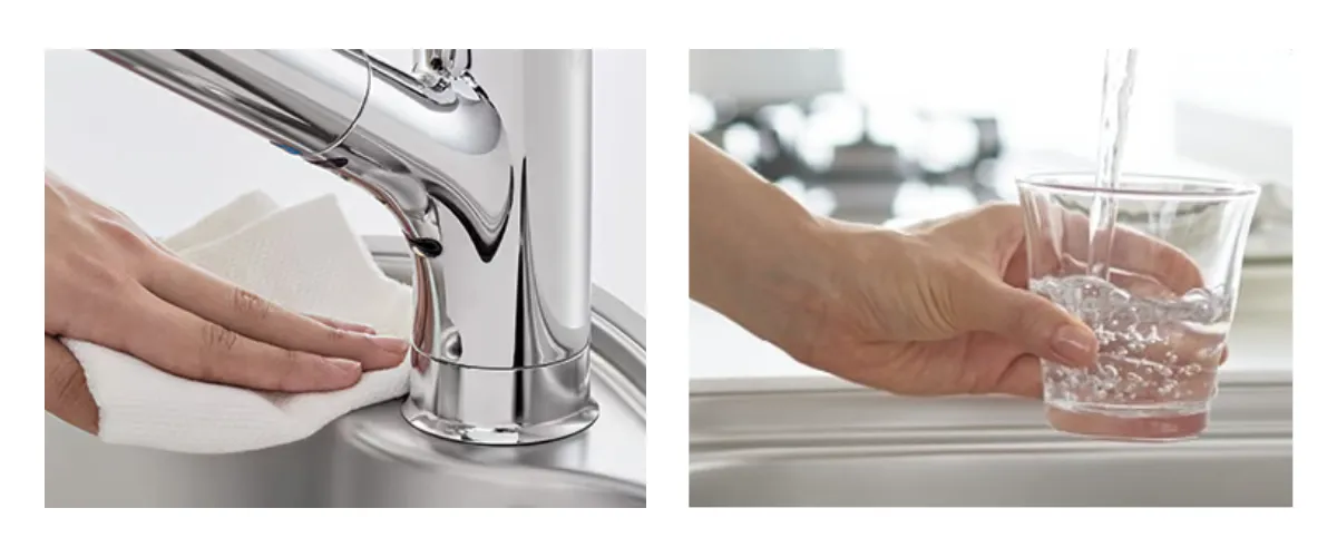 また、外付けタイプの浄水器と違って場所を取らない設計のため、シンクまわりが広々✨