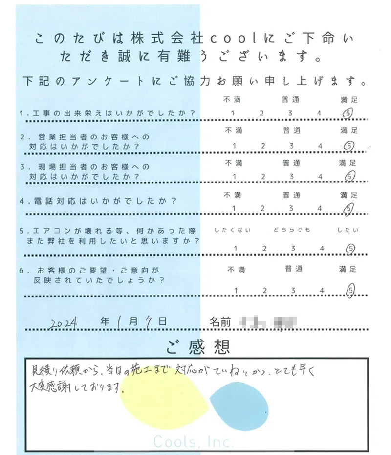 実際に設置工事をさせて頂いたお客様のご感想