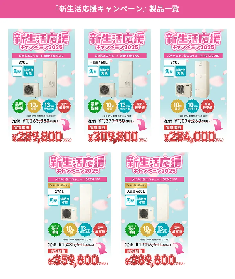 今回の<新生活応援キャンペーン2025>の対象製品は、すべて省エネ基準達成率が100%以上の補助金対象製品です。