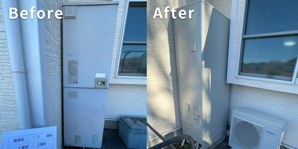 今回ご紹介するのは、三菱製の電気給湯器【SRT-4668WFU-BL】からダイキン製のエコキュート【EQX46XFV】への交換事例です✨